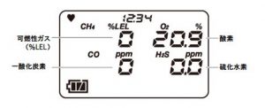 リスクアセスメント実施義務化の対象となる化学物質の安全管理に最適。1台で複数種類のガスを測定でき、作業効率UPに効果的です - フルドット表示