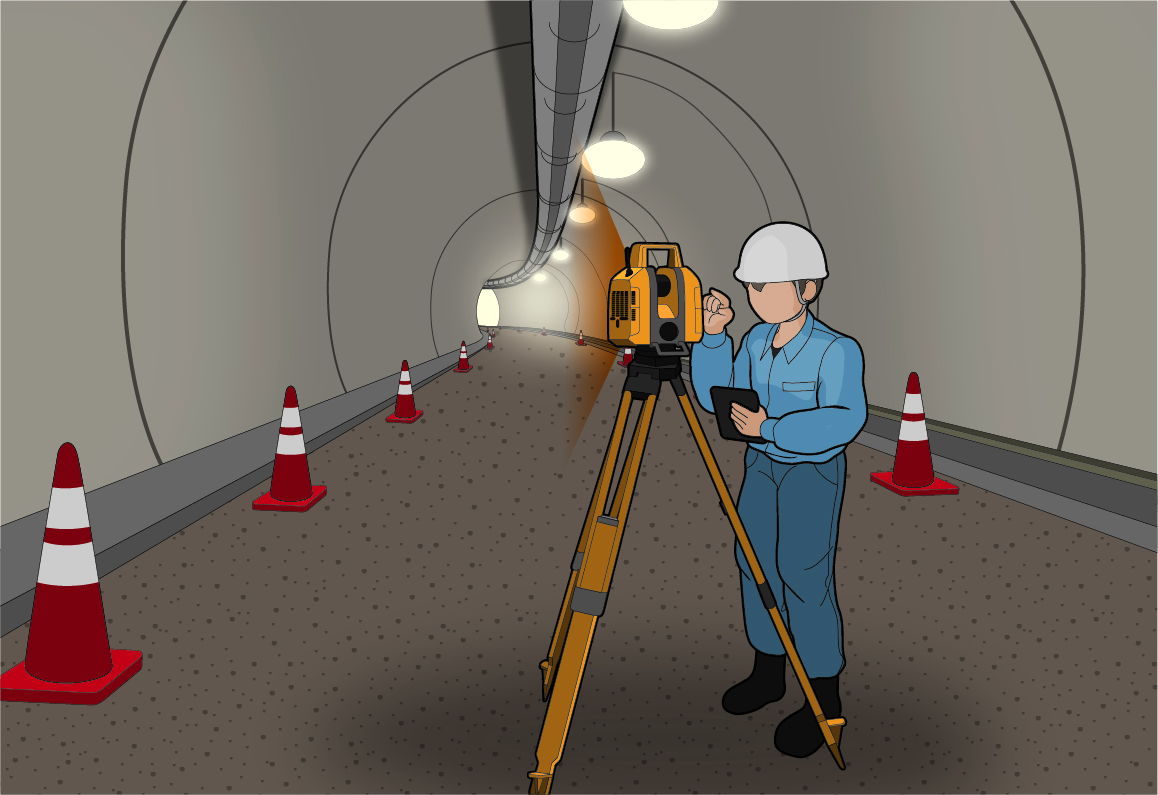 本システムは高精度3Dスキャナを用いてトンネルの内空計測を行い、設計に対するアタリ・余掘り、覆工コンクリート量、及び出来形管理表を出力します。3Dスキャナの特性であり多点群データによる面的な管理を行うことにより、トンネル施工における品質の向上を支援致します。
